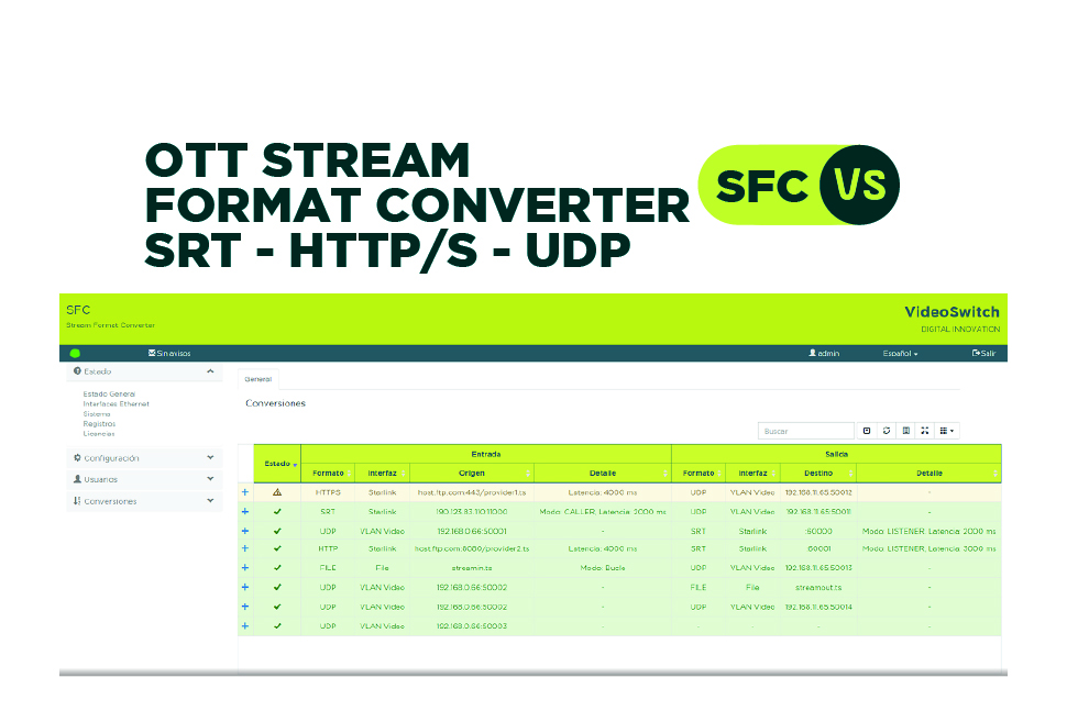 OTT Stream Format Converter SRT - HTTP/s - UDP